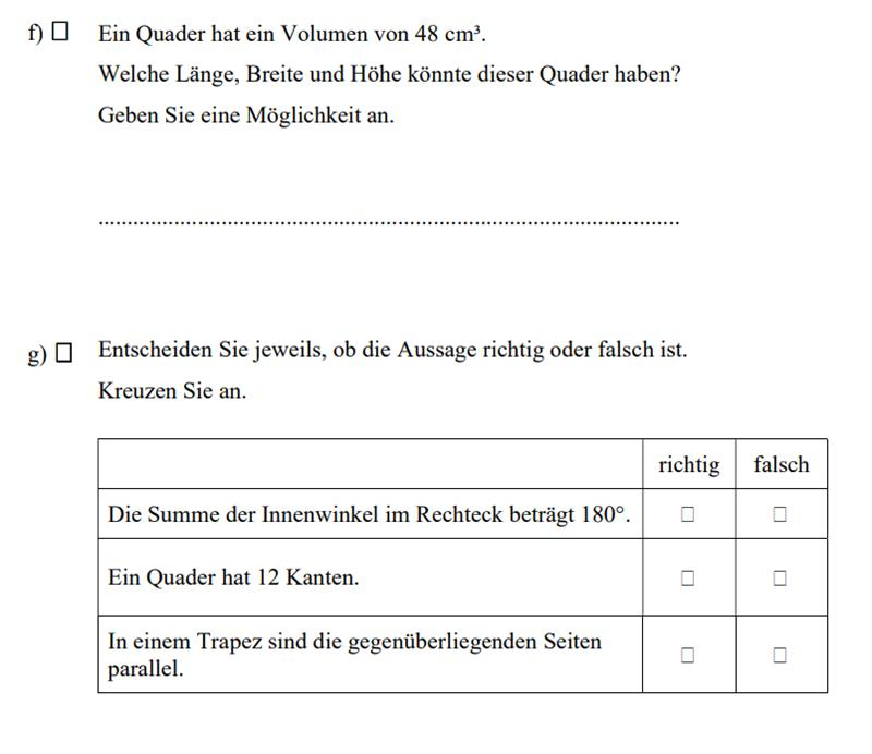 f) Wiederhole Oberfläche und Volumen des Quaders. Und auch das Volumen von Prisma und Kegel.
